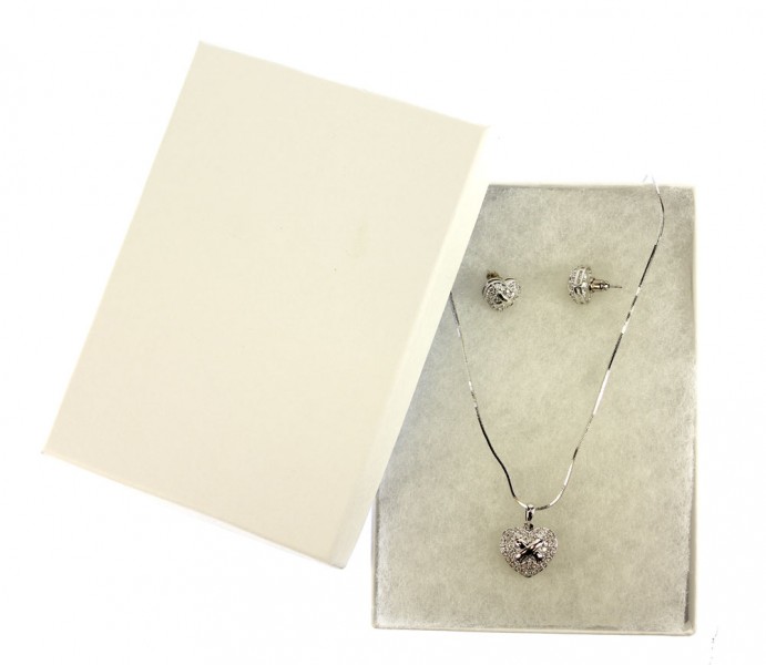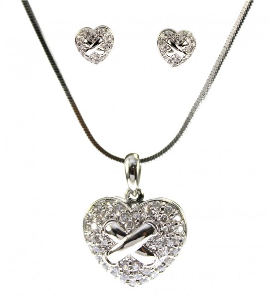 Condition: NewNE-N2653RD Necklace - Swarovski Cubic Zirconia Necklace & Earrings Set - Heart 10 MILS White Gold Plated - Charm = 3/4" W x 5/8" H - Earring = 1/2" W x 7/16" H - Chain = 16" - Lobster Closure - Include Gift Box - 4" W x 5.5" L x 1" D - Made in Italy
