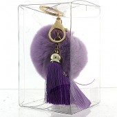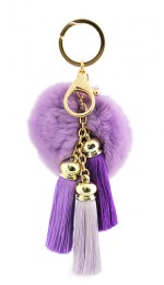 Key Chain - Rabbit Fur Pom Pom w/ Tassel - Purple