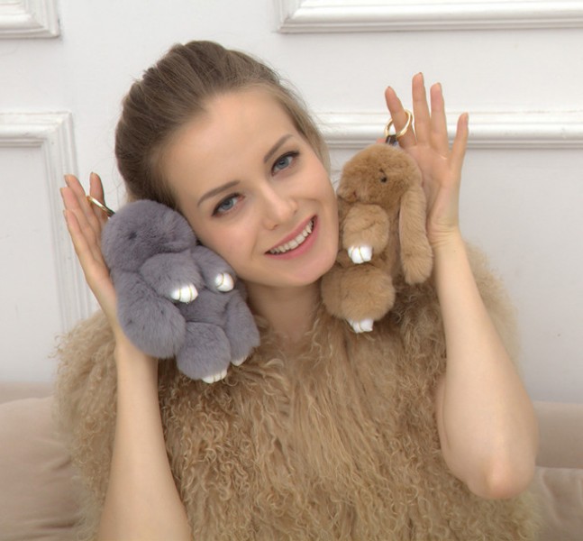 This soft rabbit fur key chain keeps your keys handy and secured.