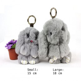 Key Chain - Bunny Rabbit Fur - Grey - Small