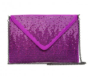 BG-EBP2043PL Evening Bag - Satin Envelop Clutch w/ Graident Colored Rhinestones - Purple - Satin - Top flap w/ snap closure - Fully Lined - Inner open pocket - Concealable Chain Strap - 9.75"W x 6.75"H x 1"D
